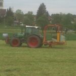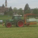 Mit einem 3.20m breiten Doppelmessermähbalken, heckseitig, werden eigenen Wiesen schonend gemäht. Bei dieser Technik werden Instekten, vor allem Bienen, zu 100% verschont. Je nach Bestandesart kann mit bis zu 7 km/h gefahren werden. Auf Anfrage werden auch fremde Wiesen gemäht.