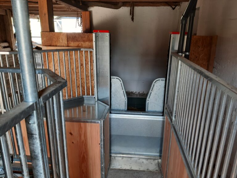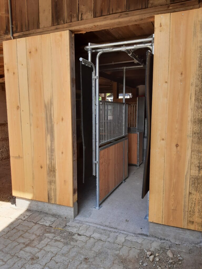 Mit dem Fütterungsautomat der Firma Schauer können die Pferde, die nicht genügend Futter an der Futterachse bekommen, individuell am Automaten mehr Heu fressen. Es wird zusätzlich ein Mineralfutter abgegeben und es wäre auch möglich ein Kraftfutter auf mehrere Male im Tag zu verteilen. Die Tiere bekommen ein Sender, der Mittels einem Band einfach am Bein befestigt werden kann.
